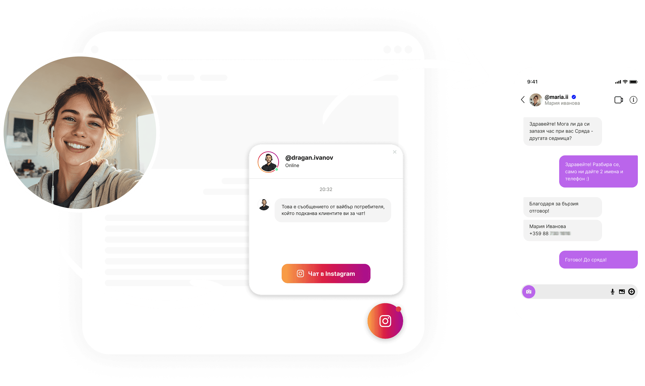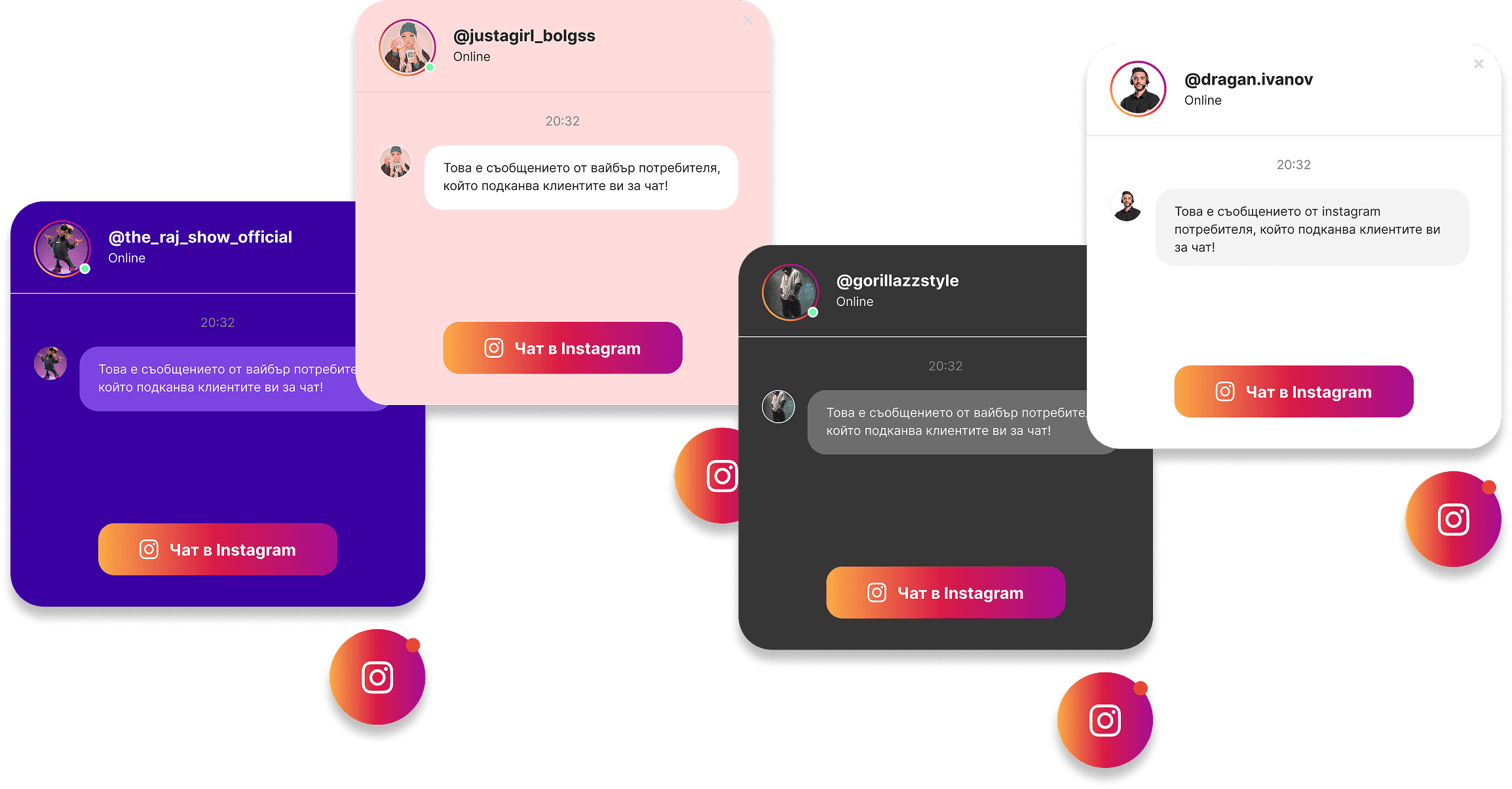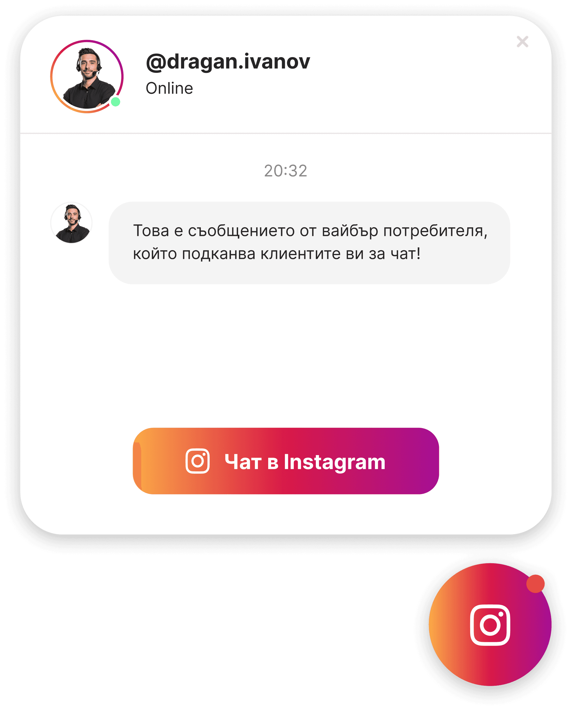 Благодарение на Instagram чат уиджета започвате разговори с вашите потенциални клиенти с лекота, защото предоставяте позната среда, която дава комфорта нужен на вашите клиенти, за да се свържат с вас и да ползват вашите услуги.