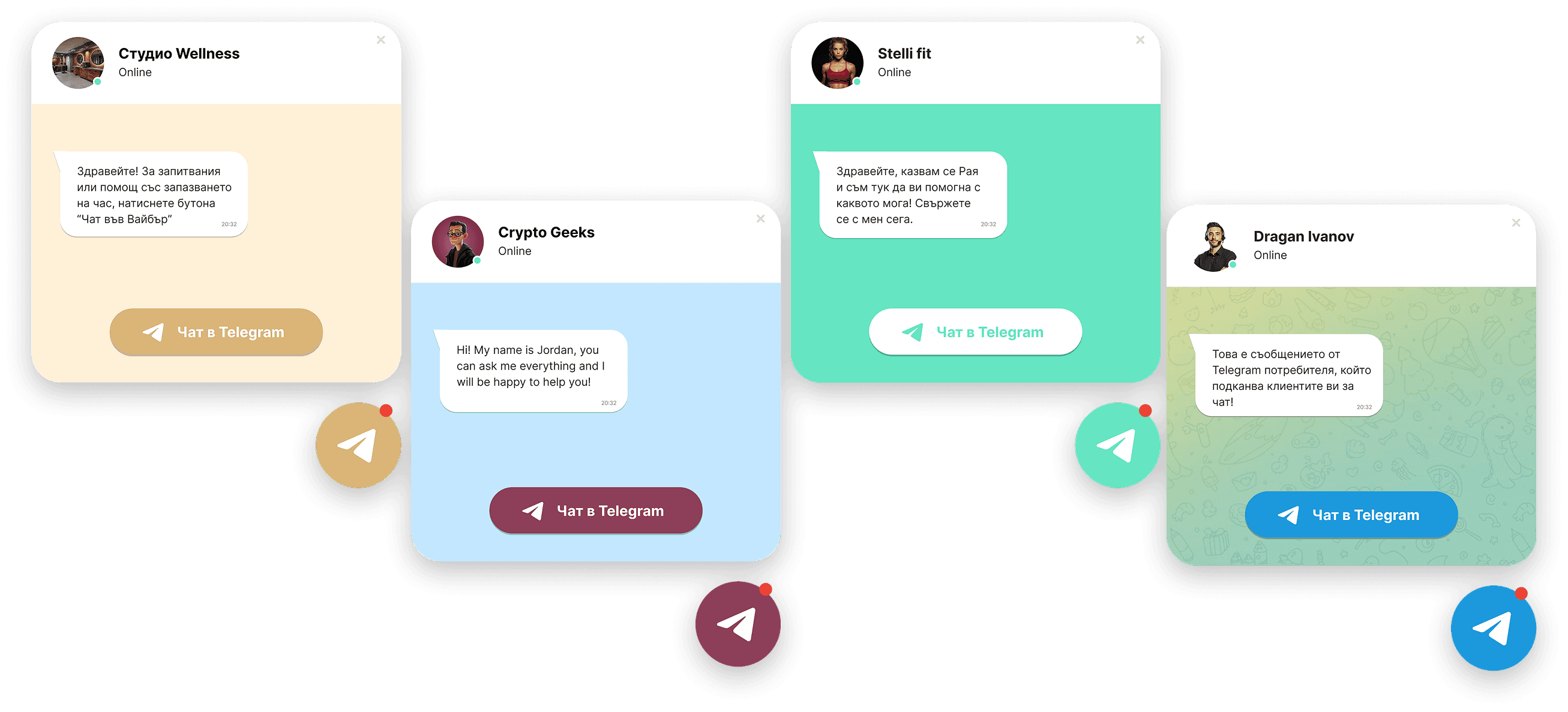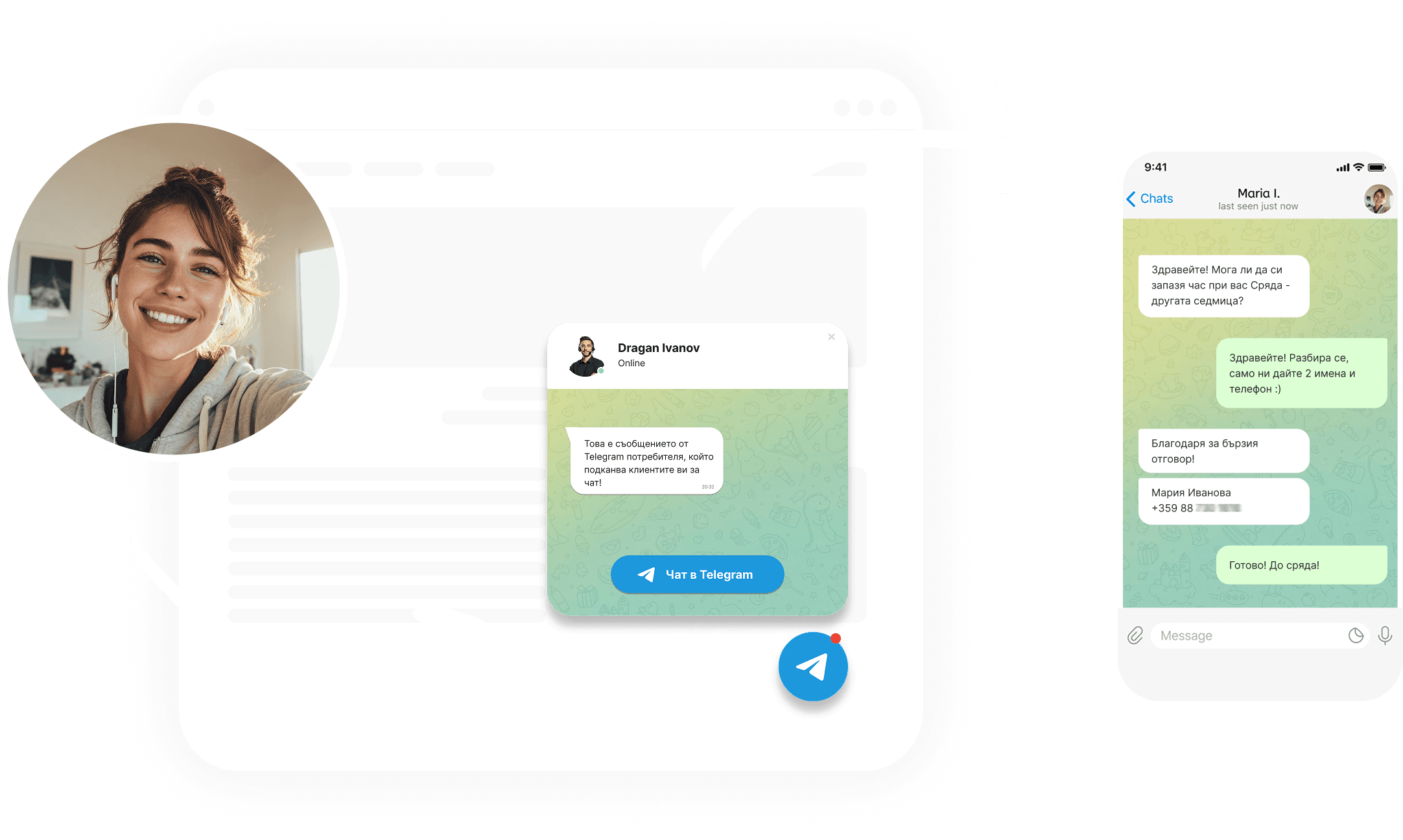 Предложете Telegram като комуникационен канал във вашия уебсайт, премахвайки още една бариера между вас и клиентите ви.